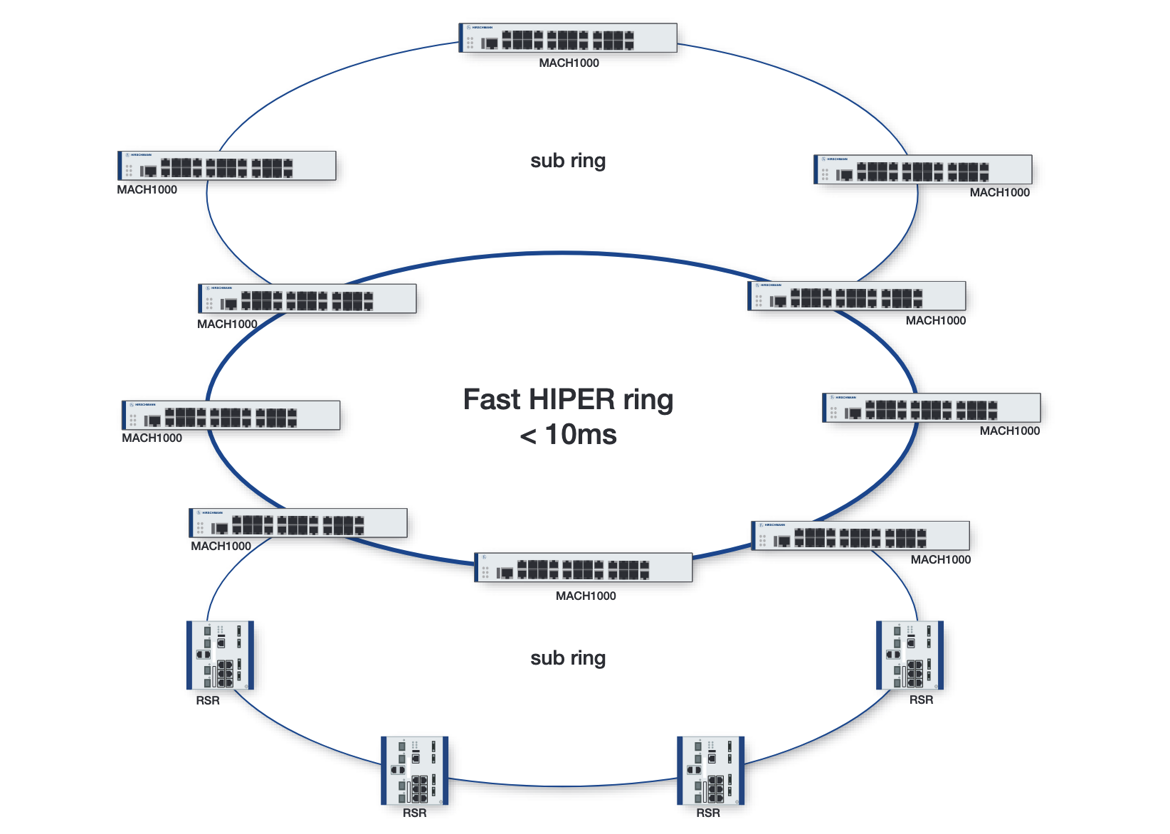 In cooperation with Hirschmann (Belden Brand) our mission is to assist customers in the development of industrial network structure from network design to professional service and configuration. Hirschmann products completely fulfil the strictest industrials requirement where redundant power supply, fast recovery time, extended temperature and high MTBF value assure high performance and reliability over time. One of the most important features of Hirschmann products is the ring redundancy system.